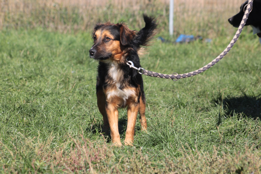 Gobo liebt Spaziergänge und bewegt sich gerne an der frischen Luft. Er läuft gut an der Leine, was das gemeinsame Spazierengehen angenehm und entspannt macht. Sein Aktivitätslevel ist agil, was ihn zu einem idealen Begleiter für Menschen macht, die gerne etwas unternehmen mit ihrem Hund.