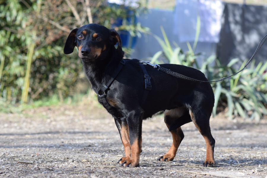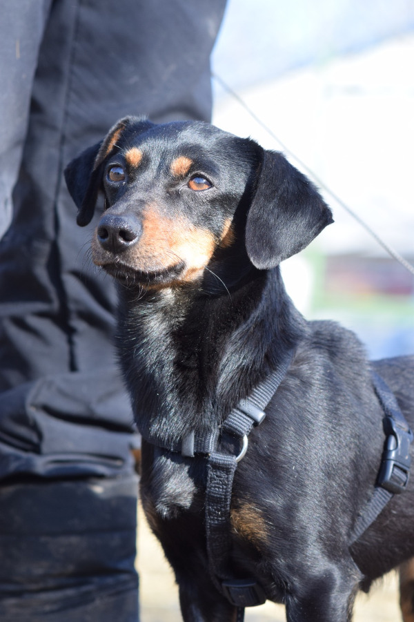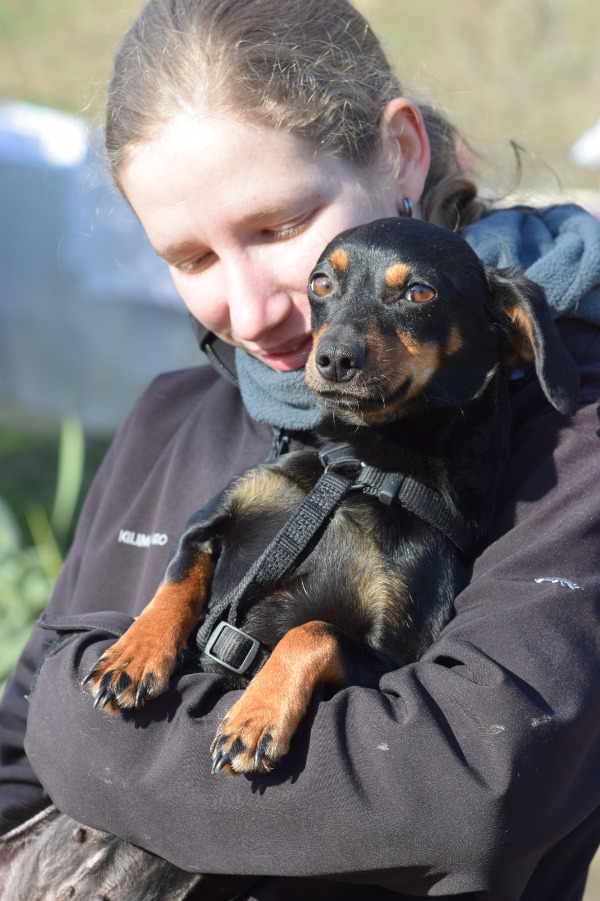 Lina sieht aus wie ein Dackel auf langen Beinchen. Sie ist sehr vorsichtig gegenüber Fremden und benötigt Zeit, um Vertrauen zu fassen. Hat sie erst einmal Vertrauen aufgebaut, zeigt sie sich freundlich und verschmust. Sie liebt es „Küsschen“ zu geben und genießt die Nähe zu Menschen, die sie kennt. Lina ist von Natur aus ruhig, jedoch kein Hund für Anfänger. Ihre Leinenführigkeit ist gut. Lina könnte durch die Anwesenheit von Kindern im Haushalt überfordert werden, weshalb ein kinderloses Zuhause für sie besser geeignet wäre. Sie hat ein ruhiges Aktivitätslevel. Mit anderen Hunden ist sie verträglich, jedoch vorsichtig. Ihre Verträglichkeit mit Katzen ist unbekannt, aber wir testen dies bei Bedarf gerne.